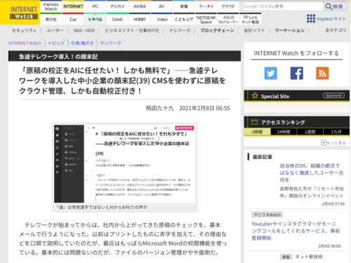 2月8日、ImpressのINTERNET WatchにShodo(ショドー)https://shodo.ink/ の詳細な導入レポートが掲載されました。 このレポートは「急遽テレワークを導入した中小企業の顛末記」という連載の39番目の記事です。 Impress INTERNET Watchさんでの記事はこちら…