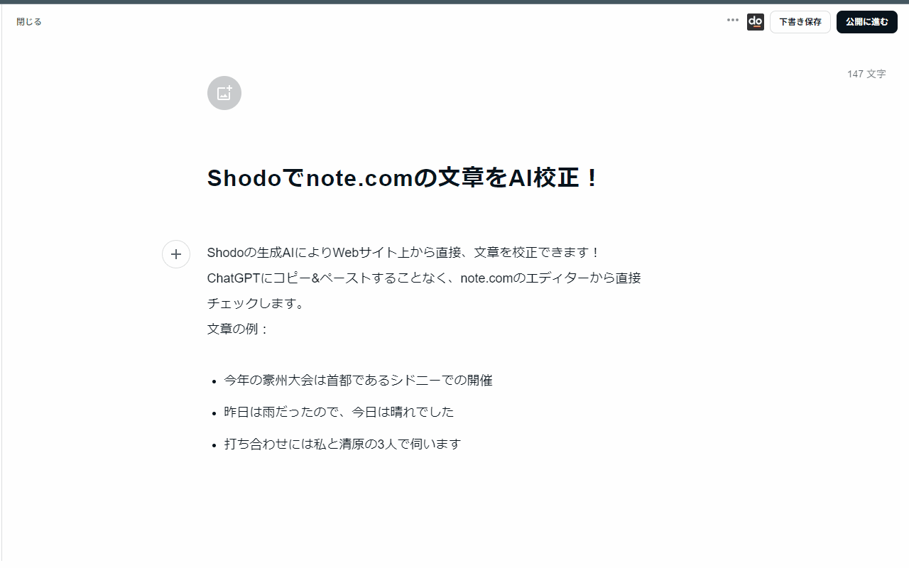Shodo (https://shodo.ink/) はAIによる文章の校正をブラウザーやWord、Google Docs等で利用できるWebサービスです。この度、Shodoのブラウザー拡張をインストールするだけでnote.com上で執筆中に文章を直接校正できるようになりました。